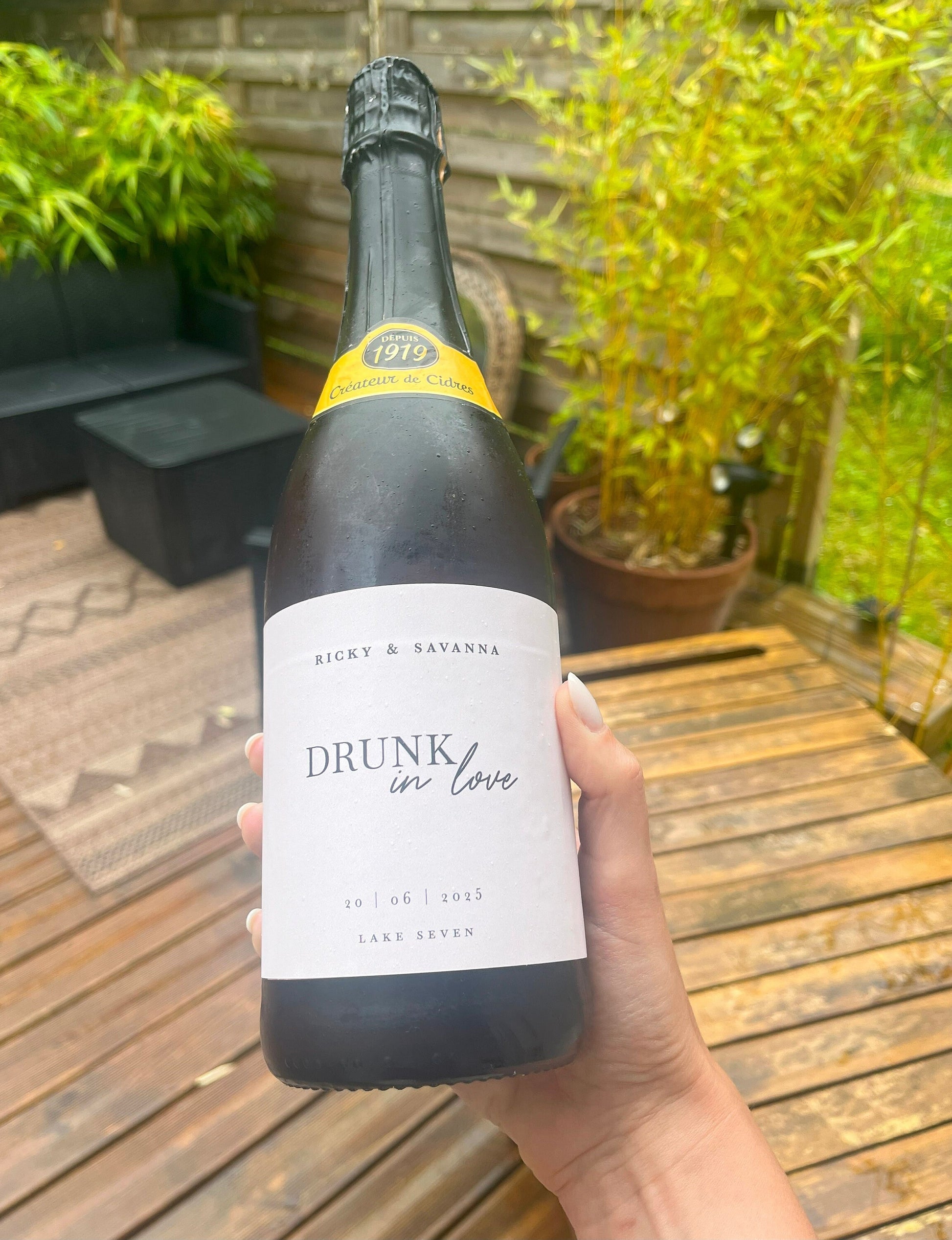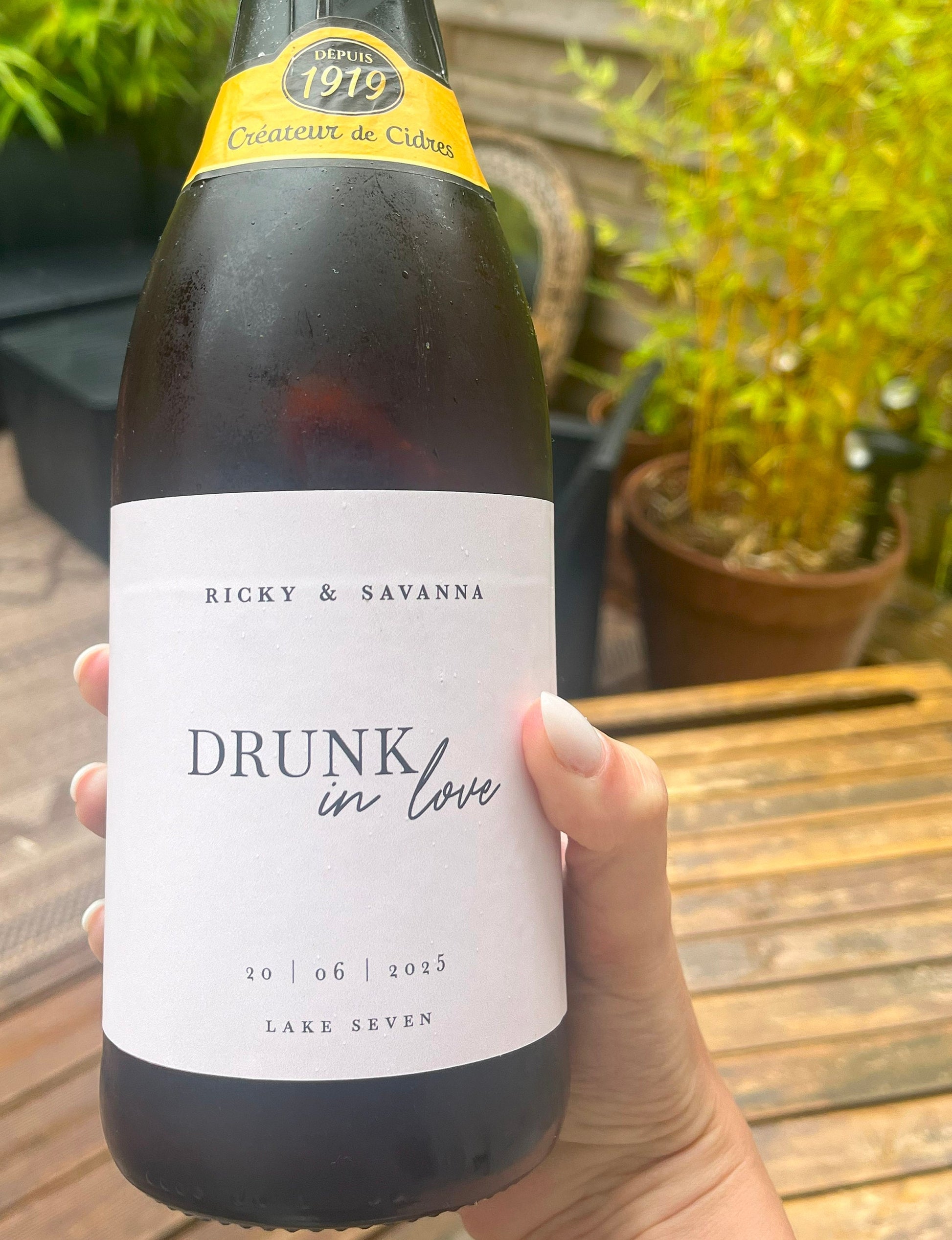 A personalized visual with your first names, the date, and the message of your choice, printed on the selected support. Easel and structure not included. Find our advice on how to choose them in the “Need advice?” section.