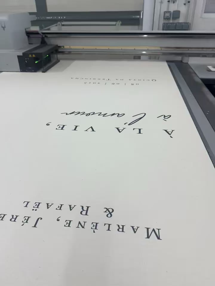 Un panneau personnalisé avec vos prénoms, la date et le message de votre choix, imprimé sur le support sélectionné. Chevalet et structure non inclus. Retrouvez nos conseils pour bien les choisir dans la rubrique “Besoin de conseils ?”.
