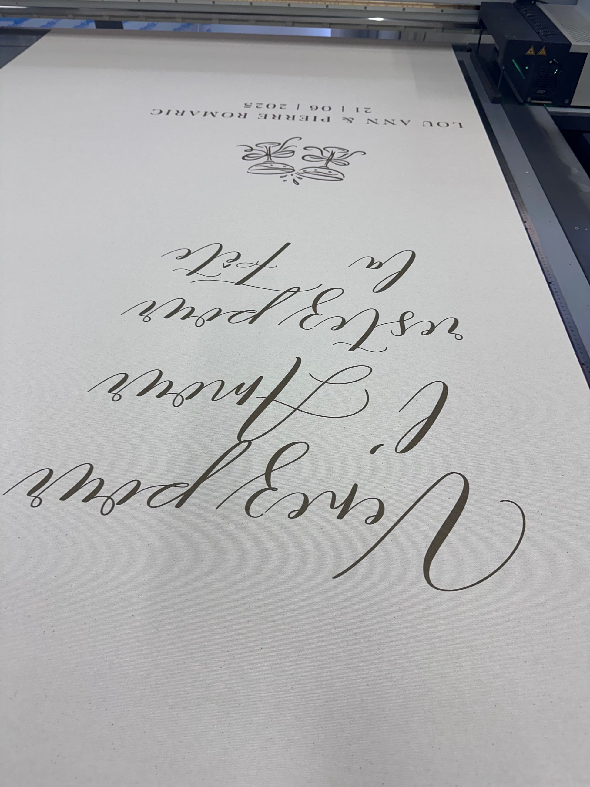 Chaque panneau est personnalisé avec les prénoms des mariés, la date et le lieu de votre cérémonie, puis soigneusement conçu et imprimé dans notre atelier de l’Oise. La qualité de cette toile effet lin lui confère une belle tenue une fois installée, idéale pour sublimer un mariage bohème, romantique ou naturel.