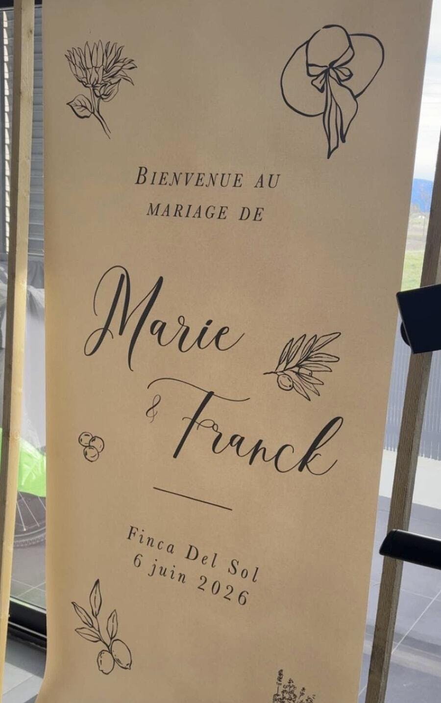 Panneau de bienvenue mariage en lin – Illustrations festives & romantiques