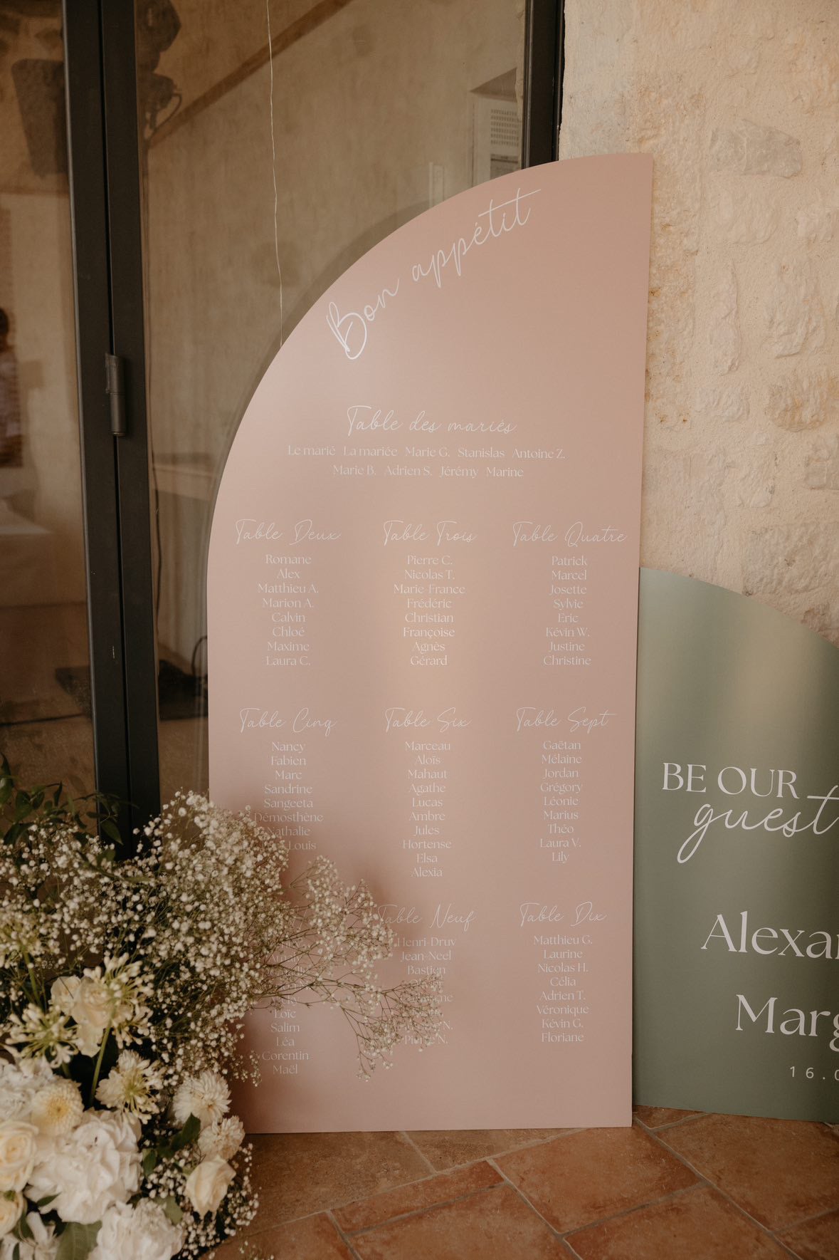 Merci de nous transmettre un fichier avec la liste de vos tables, bien ordonnées et nommées, ainsi que les invités par table.